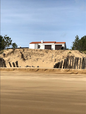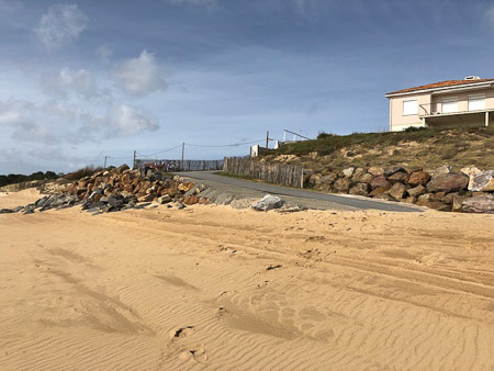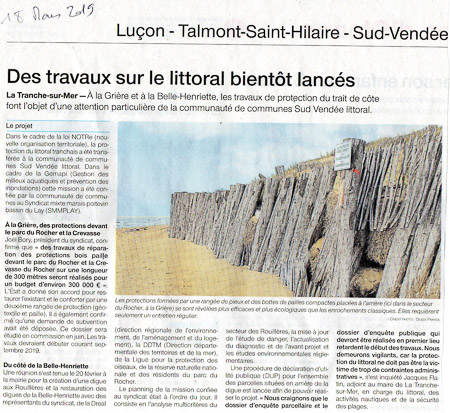 ......sur notre trait de côte, en espérant qu'il tienne jusqu'à l'été ! Deux coupures de presse indiquent que des travaux sur les protections pieux-paille vont être réalisés d'ici là.